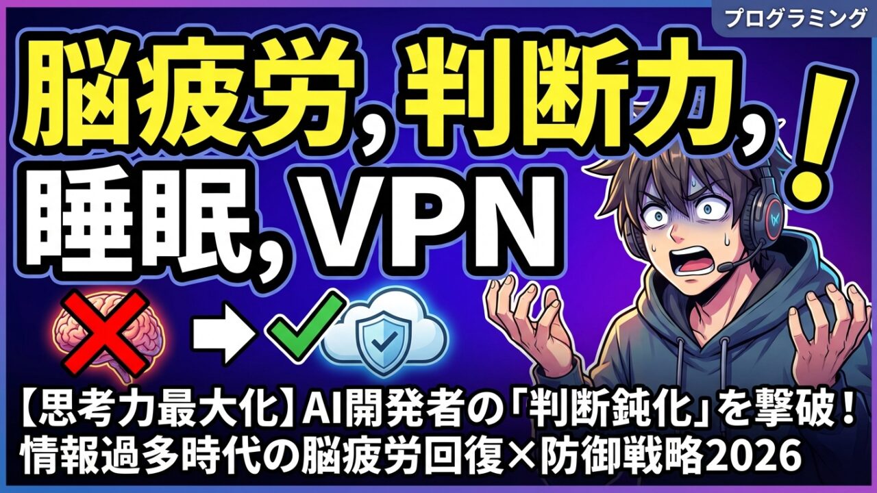 【思考力最大化】AI開発者の「判断鈍化」を撃破!情報過多時代の脳疲労回復×防御戦略2026