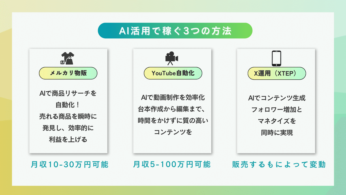 そして、せっかくAIを学ばなきゃいけないのなら、そのスキルで「稼ぐ」という体験をして、人生も生活も心も豊かにして欲しいと願ってます。