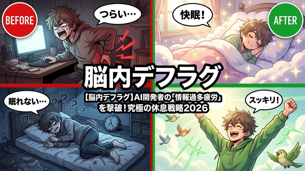 この記事では、元インフラエンジニアであり、今はAIに狂いフルスタック開発に邁進する私が、この情報過多時代を生き抜くための「究極の休息戦略」を提言します。脳をデフラグし、思考をクリアにするための実践的なアプローチと、私が実際に導入して効果を実感したツールをご紹介します。今日からあなたも、覚醒した脳でAI開発の未来を切り拓きましょう!