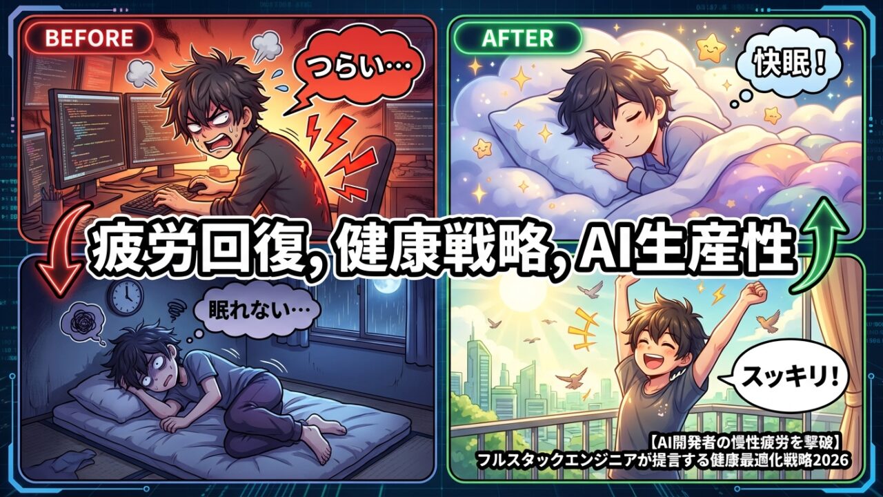 私も、AI狂と自称するまでは、まさにその典型でした。この記事では、元インフラエンジニアからAI狂のフルスタックエンジニアへと転身した私が、いかにして慢性疲労を克服し、最高のパフォーマンスを持続させているか、その具体的な戦略を余すことなくご紹介します。最新の研究データと実践的なテクニックを交えながら、あなたの「健康」を「武器」に変える方法を深掘りしていきましょう。