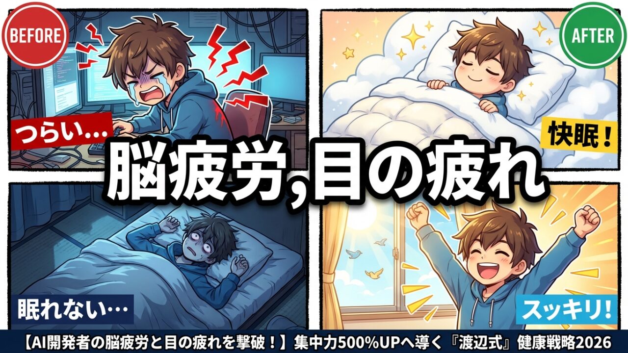 しかし、AI開発もまた、情報過多と長時間労働という課題を抱えています。私は過去の経験から「このままでは燃え尽きてしまう」と直感しました。そこで、私は「AIに劣らないパフォーマンスを人間が発揮するためには、徹底した自己管理が必要だ」という結論に至り、脳と目の健康を最優先する戦略を構築し始めたのです。
