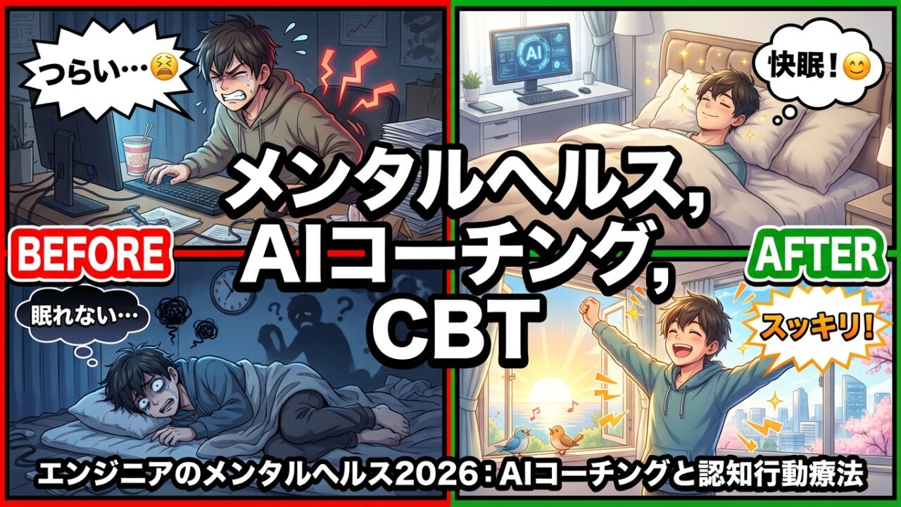 そこで今回の記事では、エンジニアのメンタルヘルスに焦点を当て、AIを活用したメンタルヘルスケアの実践方法をご紹介します。AIコーチングと認知行動療法(CBT)を組み合わせることで、より効果的にストレスを軽減し、心の健康を保つための具体的なステップを解説します。
