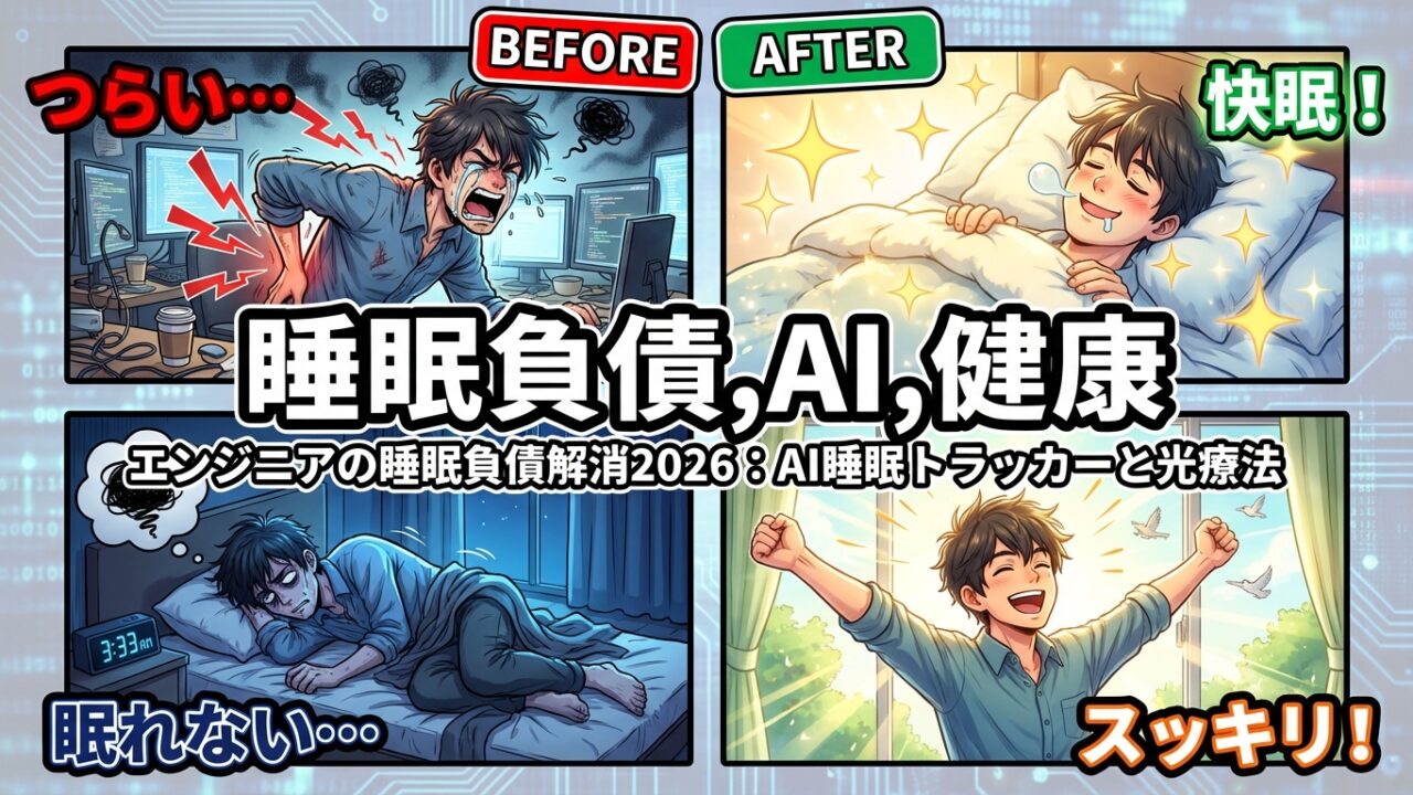この記事では、現代のエンジニアが抱える深刻な問題、睡眠負債に焦点を当て、最新のAI技術と科学的アプローチに基づいた具体的な解決策を提案します。AI睡眠トラッカーの活用から、光療法、そして職場環境の改善まで、すぐに実践できる方法を網羅的に解説します。