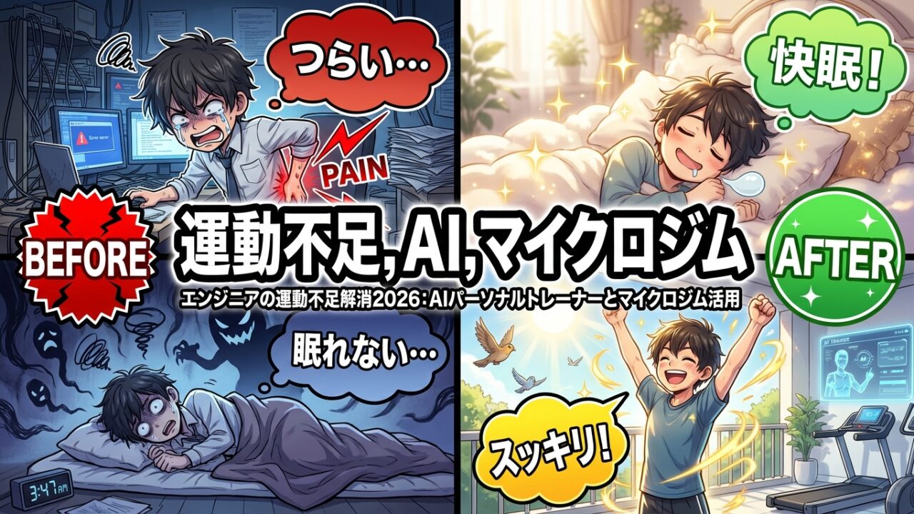 そこで今回は、多忙なエンジニアでも無理なく続けられる運動習慣の確立を目指し、最新のAI技術とマイクロジムを活用した運動不足解消法を徹底解説します。この記事を読めば、AIパーソナルトレーナーによる効果的なトレーニングメニューの作成、マイクロジムでの効率的な運動、そして運動習慣を継続するためのモチベーション維持まで、具体的な方法が分かります。