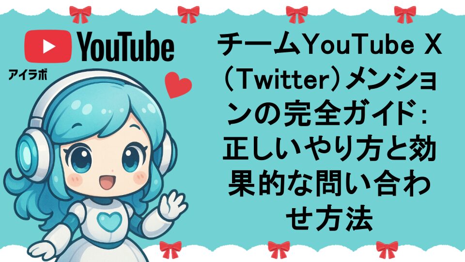YouTubeで困った時の頼みの綱「チームYouTube」へのXメンション方法を詳しく解説。問題解決に導く効果的な書き方、メンションのタイミング、注意点まで実体験を基に分かりやすく説明します。チャンネル運営で困った時の強力なサポート手段を身につけましょう。