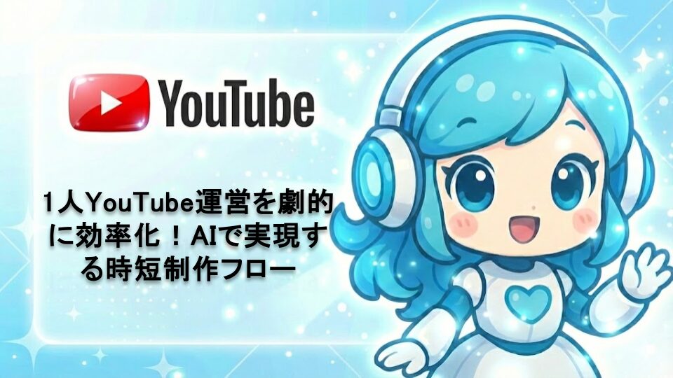 1人でYouTube運営をしている方必見!企画から編集、サムネイル作成、投稿後の分析まで、AIツールを活用した効率的な制作フローをご紹介。動画制作時間を半分に短縮し、質の高いコンテンツを継続的に投稿する具体的なテクニックと、おすすめAIツールを詳しく解説します。