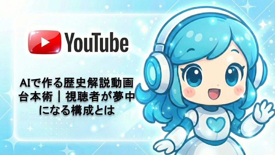 歴史解説YouTube動画で成功するための台本作成術をAI活用法と共に解説。視聴者を最後まで引き付ける構成、分かりやすい説明テクニック、効果的なストーリーテリング手法まで、初心者でも実践できる具体的なノウハウを公開します。