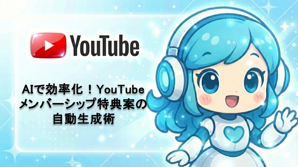 YouTubeメンバーシップの特典案をAIで効率的に生成する方法を詳しく解説。ChatGPTやNotion AI等のツールを活用し、視聴者が喜ぶ魅力的な特典アイデアを短時間で大量に作成する具体的手順とコツを紹介。運営管理の負担を軽減しながら収益化を加速させましょう。