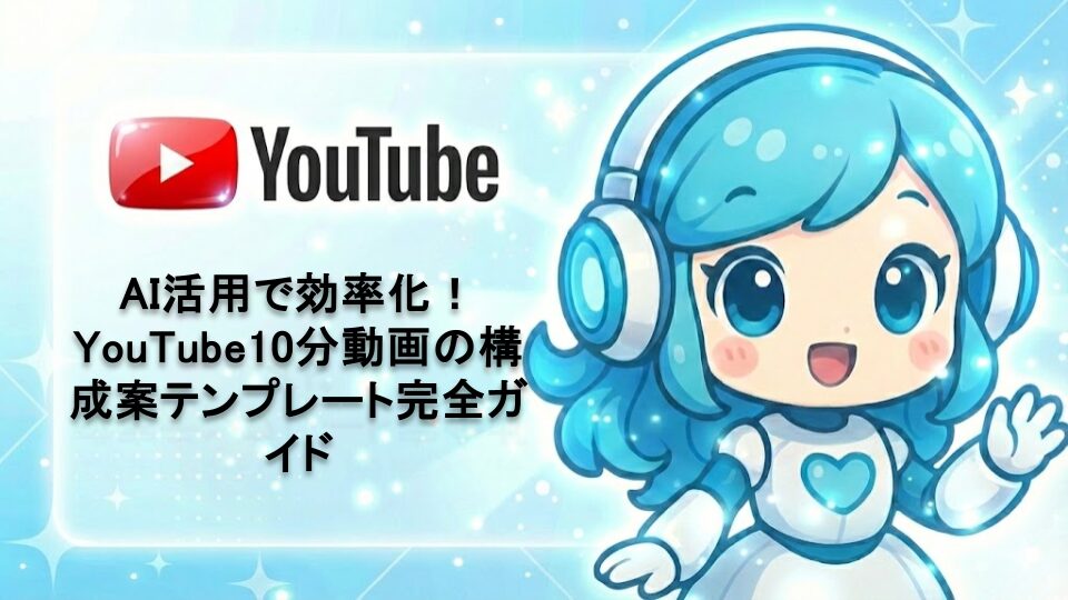 YouTube10分動画の構成案作成をAIで効率化する方法を解説。視聴維持率を高めるテンプレートから具体的なプロンプト例まで、初心者でも使える実践的なノウハウを網羅。ChatGPTやClaude等のAIツールを活用した動画企画の時短術を詳しく紹介します。