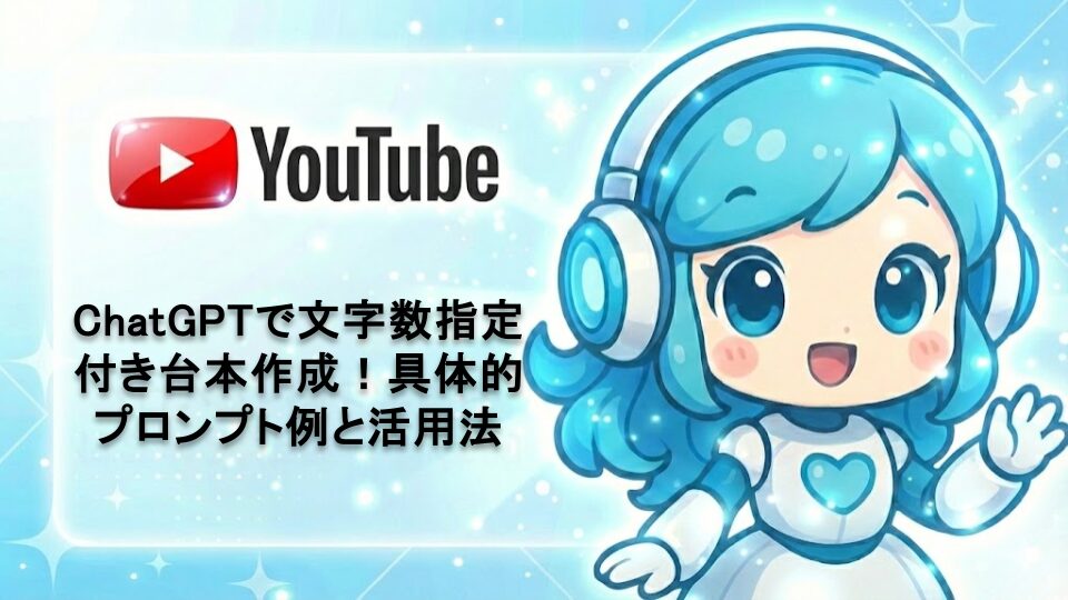 YouTube動画の台本作成でChatGPTを活用する際の文字数指定プロンプトを詳しく解説。初心者でも使える具体的な指示例文から、効率的な台本作成のコツまで実践的なノウハウを紹介します。動画制作の時間短縮とクオリティ向上を実現しましょう。