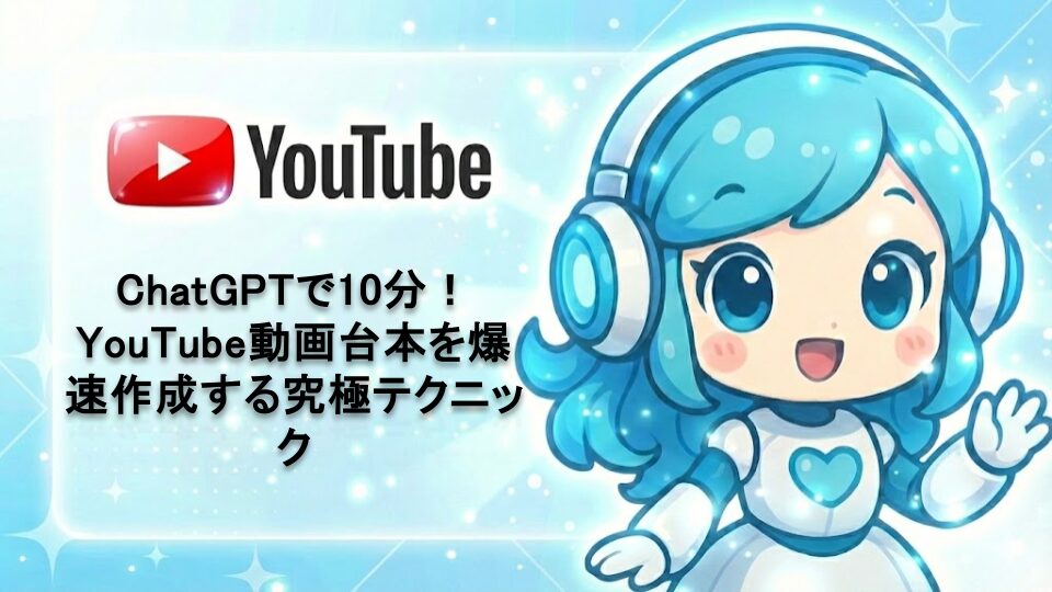 YouTube動画台本作成に時間をかけすぎていませんか?ChatGPTを活用すれば、たった10分で質の高い台本が完成します。プロンプトの書き方から構成テンプレート、実践的な時短テクニックまで、効率的な動画制作フローを徹底解説。初心者でもすぐに実践できる具体的手順で、動画制作の生産性を劇的に向上させましょう。