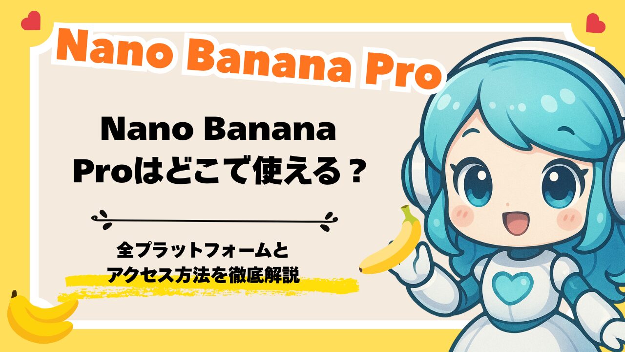 2025年11月20日にリリースされたNano Banana Pro(Gemini 3 Pro Image)は、Googleが提供する最新の画像生成AIモデルです。その高い性能から多くの注目を集めていますが、いざ使おうとすると「どこでアクセスできるの?」「自分に合ったプラットフォームはどれ?」と迷う方も多いのではないでしょうか。