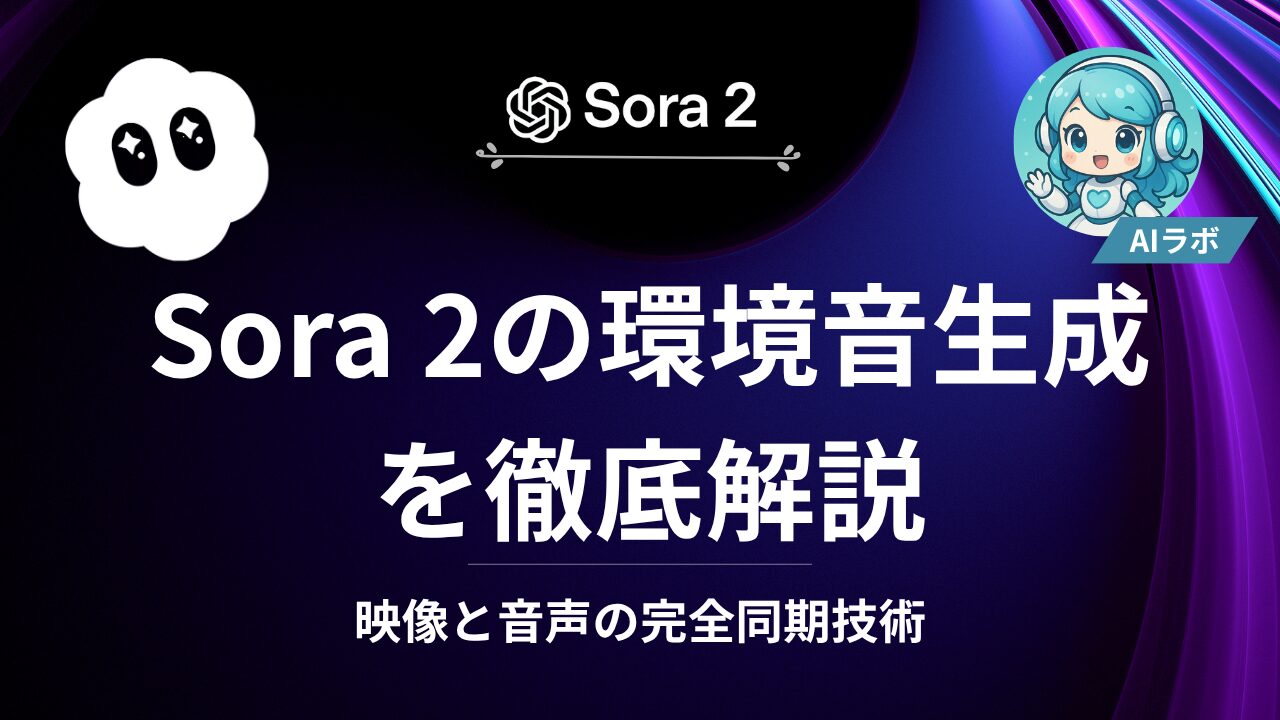 Sora 2が実現した革新的な環境音生成技術について詳しく解説します。映像と完全に同期した対話、環境音、効果音を自動生成する仕組みから、従来の音声生成手法との違い、実践的な活用方法まで網羅的に紹介。動画生成と同時に音声を作り出す技術的メカニズム、音と映像の同期精度、リップシンク(口の動きと音声の一致)の実現方法、様々な環境音や効果音の生成品質について解説します。従来は別々に制作していた映像と音声を統合的に生成する新しいアプローチにより、制作ワークフローがどう変わるのかを理解できる実践的教育記事です。