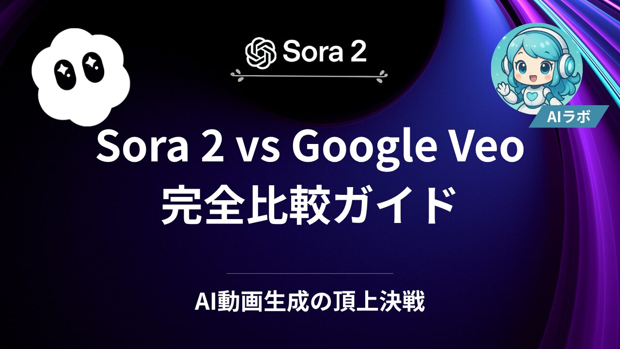 Sora 2とGoogle Veoを徹底比較します。両者の技術的違い、動画品質、解像度、生成速度、プロンプト理解、物理法則の正確性、機能差を詳細分析。価格体系、アクセス方法、利用可能性、APIの有無、エコシステム統合を実践的に解説。ユースケース別の最適選択、映画制作・マーケティング・教育・ソーシャルメディアでの使い分けを網羅。OpenAIとGoogleの戦略的違い、技術開発アプローチ、市場戦略、今後の展望まで包括的に紹介。どちらを選ぶべきか、両方使うべきか、競争が業界に与える影響を理解する必須の比較記事です。
