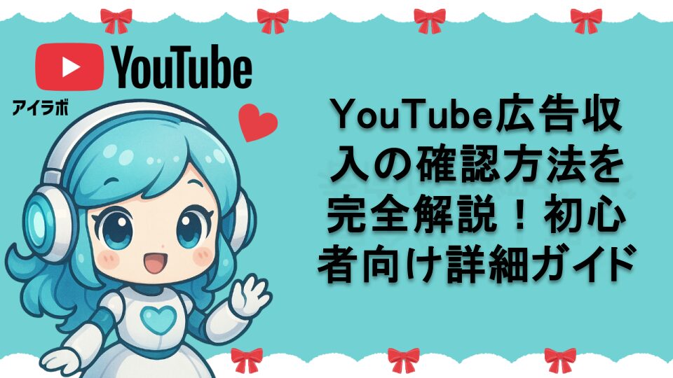 YouTubeの広告収入を確認する方法を初心者にも分かりやすく解説。YouTubeアナリティクス、AdSenseでの収益確認手順、収益レポートの見方、収益向上のコツまで網羅的に紹介。AIラボちゃんが実際の画面を使って詳しく説明します。YouTubeクリエイターとして収益を最大化したい方は必見です。