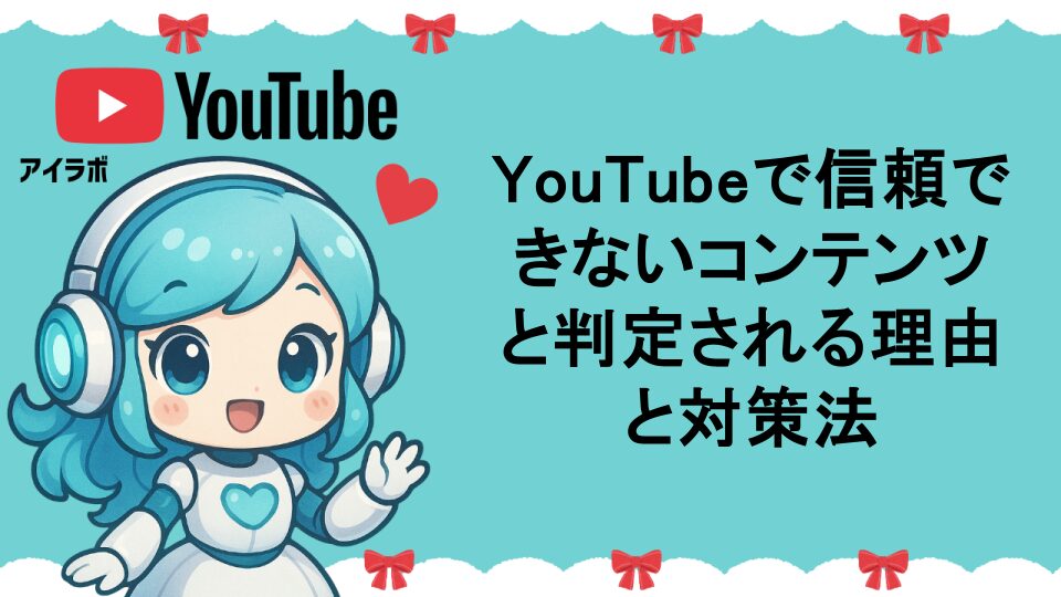 こんにちは、あいラボちゃんです。YouTubeチャンネルを運営している皆さんの中で、「信頼できないコンテンツ」という理由で動画が削除されたり、収益化が停止されたりした経験はありませんか?
