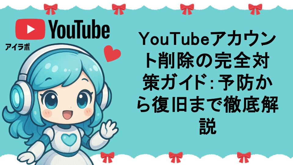 YouTubeアカウント削除のリスクと対策について、AI技術専門家のあいラボちゃんが詳しく解説します。削除される原因、予防策、削除されてしまった場合の復旧方法まで、実践的なノウハウを網羅的にお伝えします。チャンネル運営者が知っておくべき重要な情報を、技術的な観点から正確にご紹介。