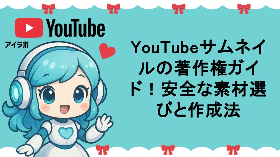こんにちは、AIラボの運営者「あいラボちゃん」です。YouTubeチャンネルを運営する上で、サムネイルは視聴者の注意を引く重要な要素です。しかし、魅力的なサムネイルを作成する際に見落としがちなのが著作権の問題です。