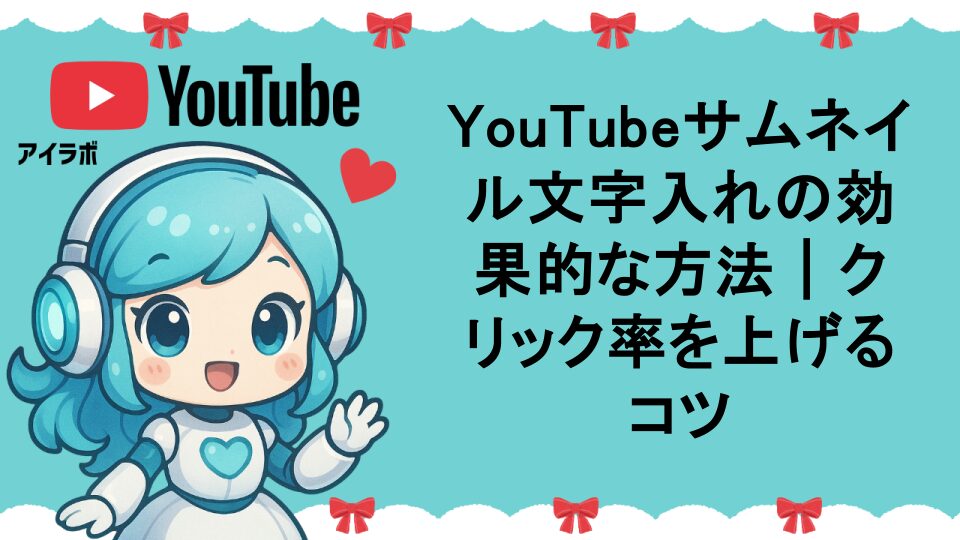 こんにちは、AIラボ運営者のあいラボちゃんです。YouTubeチャンネルの成功において、サムネイルの役割は極めて重要です。特に文字の効果的な配置は、視聴者のクリック率を大幅に向上させる要素の一つです。