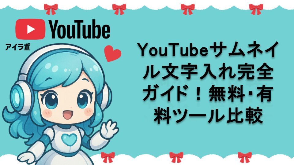 YouTubeサムネイルに効果的な文字を入れる方法を詳しく解説。無料・有料ツールの特徴、読みやすいフォント選択、色の組み合わせ、配置のコツまで実践的なテクニックを網羅。視聴者の目を引く魅力的なサムネイル制作で再生回数アップを目指しましょう。初心者でも今すぐ実践できる具体的な手順とデザインのポイントをAIラボちゃんが徹底解説します。