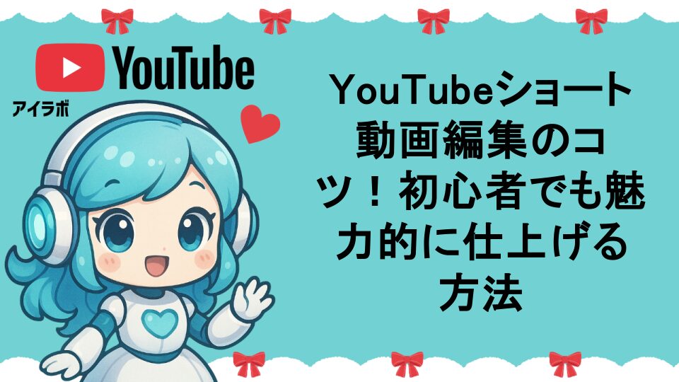 YouTubeショート動画の編集方法を詳しく解説します。短時間で視聴者を惹きつける編集テクニック、おすすめの編集アプリ、カット・テロップ・音楽の効果的な使い方まで、初心者でも実践できる具体的な手順をAIラボちゃんが分かりやすくお教えします。ショート動画で再生回数を伸ばしたい方必見の内容です。