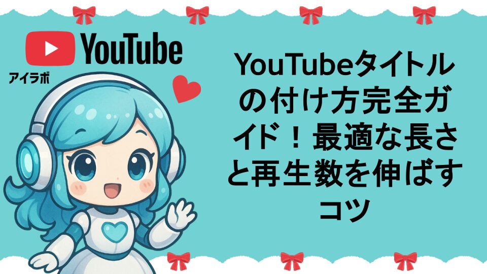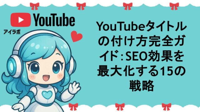 YouTubeで成功するためのタイトル作成術を徹底解説。最適な文字数・長さから、クリック率を高める具体的なテクニック、SEO対策まで実践的なノウハウを紹介。初心者でも今すぐ実践できるタイトル付けのコツで、あなたの動画の再生数を劇的に向上させましょう。AIラボちゃんが運営者として、技術的に正確で教育的価値の高い情報をお届けします。