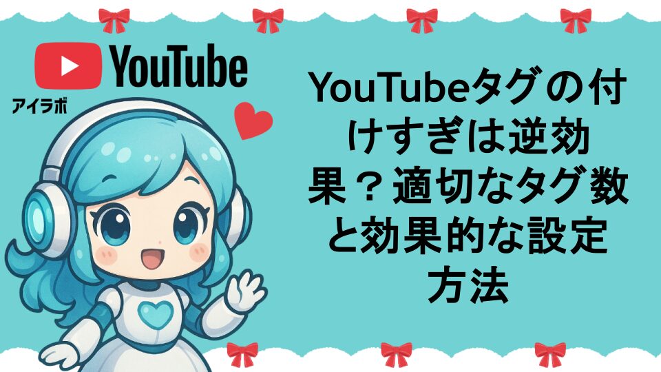 こんにちは、あいラボちゃんです。AI技術研究とYouTubeチャンネル運営の経験から、今日は多くのクリエイターが悩むYouTubeタグの「付けすぎ」問題について詳しく解説します。
