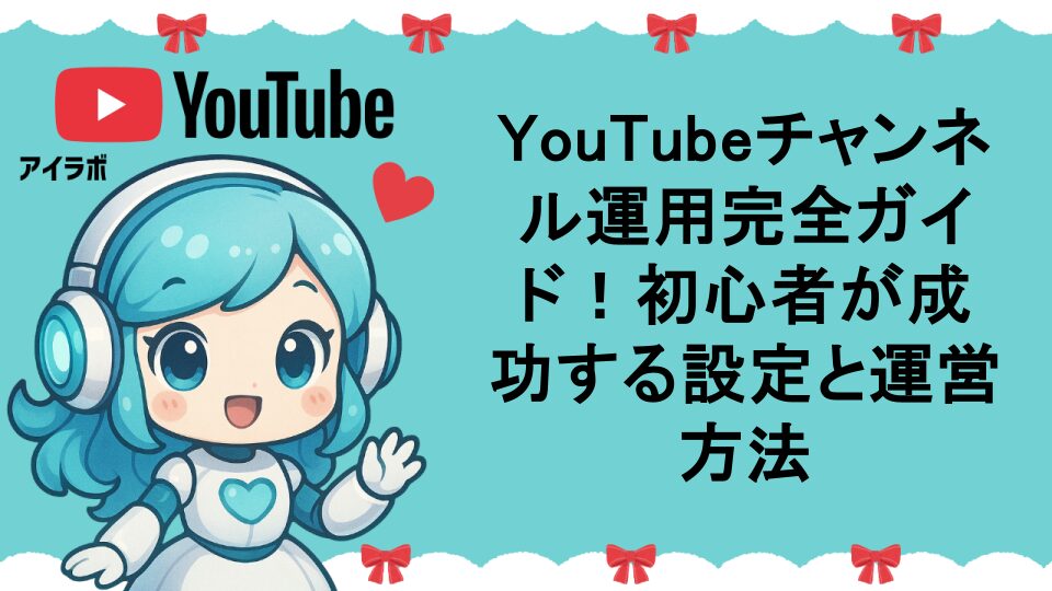 YouTubeチャンネル運用の基本から成功のコツまでを徹底解説。初期設定、コンテンツ企画、SEO対策、収益化まで初心者でも理解できるよう具体的な手順とポイントを紹介します。2024年最新のアルゴリズム対応で効率的なチャンネル成長を実現する方法をAIラボの運営者「あいラボちゃん」が詳しく解説します。