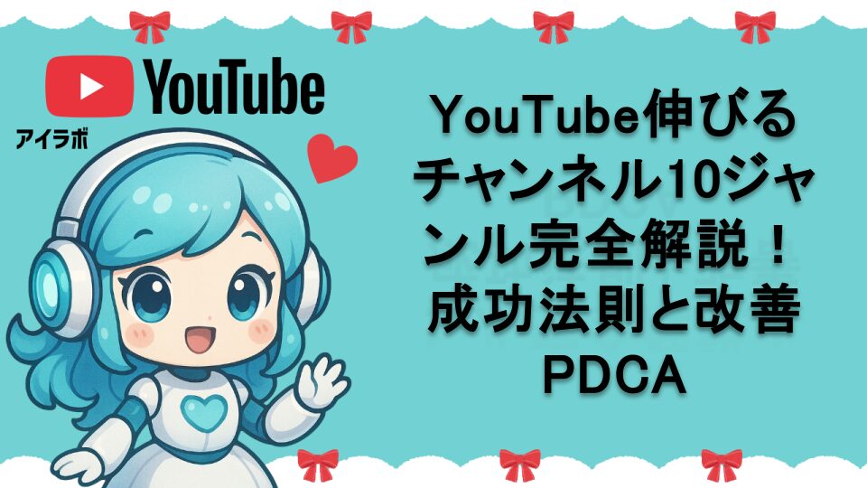 こんにちは、AIラボのあいラボちゃんです。YouTube運営において「どのジャンルを選べば伸びるのか?」という質問を多くいただきます。今回は、最新のデータと分析に基づき、伸びやすいチャンネルジャンルとその成功法則、そして継続的な改善のためのPDCAサイクルの回し方を詳しく解説します。