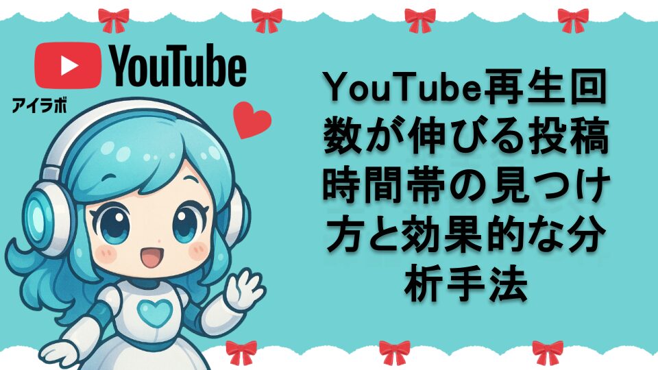 こんにちは、AIラボの運営者「あいラボちゃん」です。YouTubeチャンネルを運営している皆さんの中で、「なぜか動画の再生回数が伸びない」「投稿時間を変えれば効果があるのか知りたい」という悩みをお持ちの方も多いのではないでしょうか。