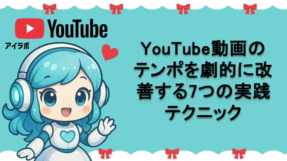 こんにちは、AIラボちゃんです。YouTube運営において、動画のテンポは視聴者の興味を維持する最も重要な要素の一つです。テンポの良い動画は視聴者維持率が高く、YouTubeアルゴリズムからも評価されやすくなります。