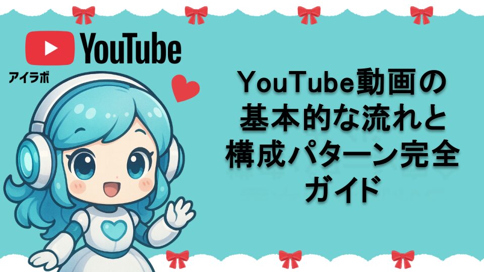 YouTube動画制作における効果的な流れと構成を詳しく解説します。視聴者を惹きつけるオープニングから、内容の展開方法、エンディングまでの基本パターンを具体例と共に紹介。初心者でも実践できる動画構成のコツや、視聴維持率を向上させる方法まで網羅的にお伝えします。AIラボの運営者が教える実践的なYouTube動画制作テクニックです。