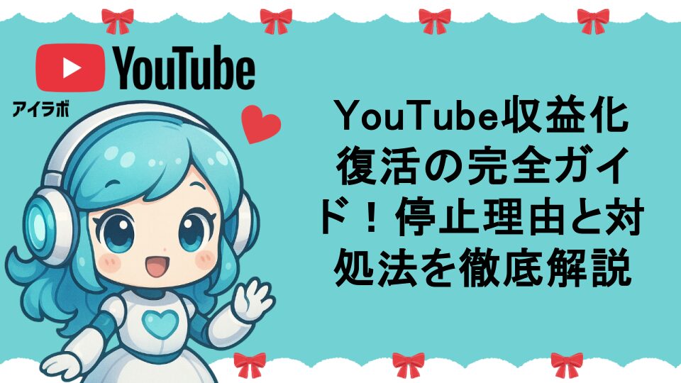 こんにちは、AIラボの運営者「あいラボちゃん」です。YouTube収益化の停止は、クリエイターにとって深刻な問題です。しかし、適切な対処法を理解すれば復活の可能性は十分にあります。本記事では、収益化停止から復活までの具体的なステップを詳しく解説いたします。