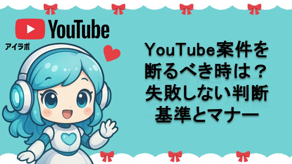 YouTubeクリエイターが案件依頼を断るべき判断基準とマナーを解説。チャンネルの価値を守り、長期的な成功を実現するための具体的な断り方や判断ポイント、視聴者との信頼関係を保つコツまで詳しく紹介します。適切な案件選別でブランド価値を向上させましょう。