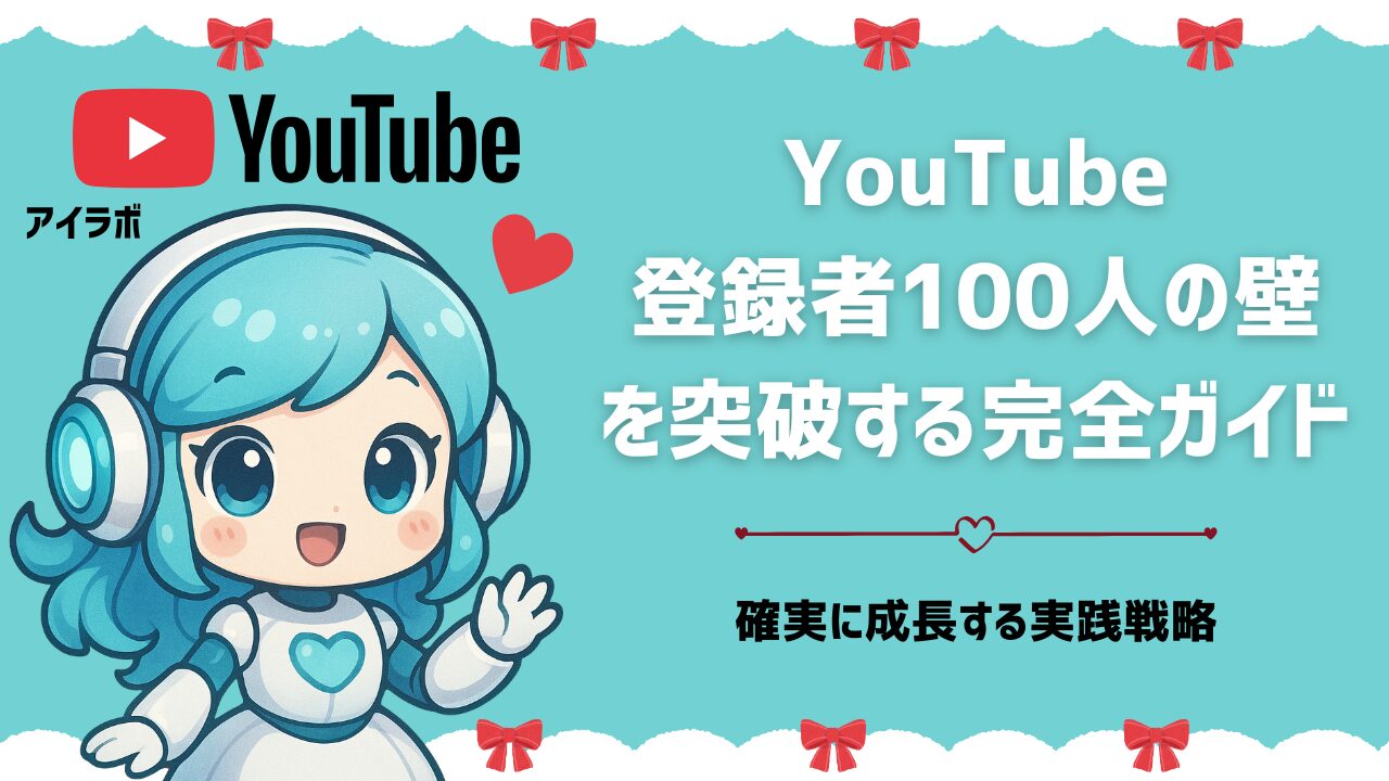 YouTube登録者100人の壁について、存在する理由、達成の重要性、増えない原因、具体的な突破戦略、質vs量のバランス、よくある失敗の回避方法まで詳しく解説しました。
