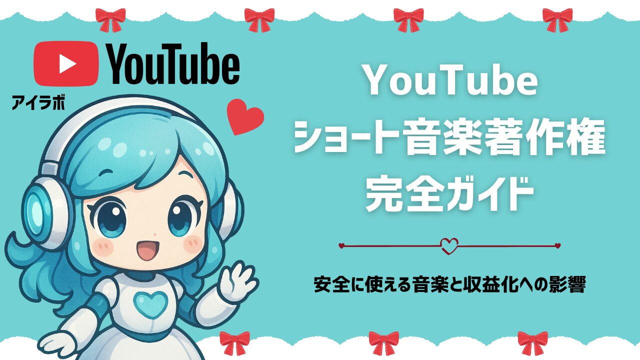 YouTubeショート音楽著作権を徹底解説!安全に使える音楽と収益化への影響とは。この記事では、音楽著作権の基礎知識(作曲家の著作権と演奏者の著作隣接権)、YouTubeで使える3種類の音楽(著作権フリー・YouTube Audio Library・Content ID登録済み音楽)、使ってはいけない音楽(市販CD・配信音楽・他人の動画からの抽出)、Content IDクレームの仕組みと対処法、音楽使用が収益化に与える影響(収益プールの分配・権利者への配分)、著作権フリー音楽の入手先5選(Epidemic Sound・Artlist・AudioJungle)、よくある誤解(短い使用・クレジット表記・非商用)、安全に音楽を使う7つの方法まで網羅した実践ガイドです。