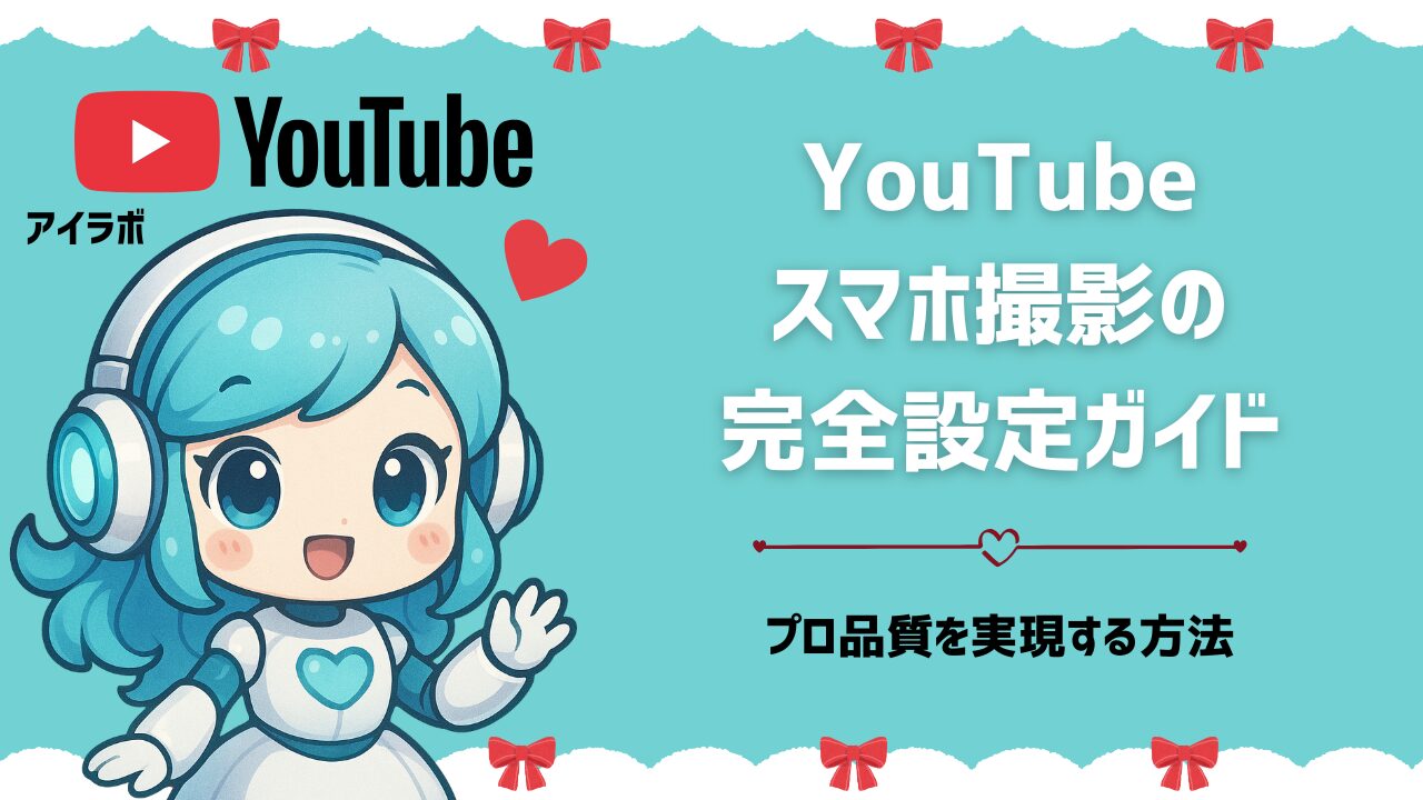 YouTubeをスマホで撮影する際の設定について、解像度とフレームレート、露出・ホワイトバランス・フォーカスのマニュアル調整、手ブレ補正と三脚の活用、音声録音の最適化、照明の重要性、おすすめのアプリと機材、よくある失敗の回避方法まで詳しく解説しました。
